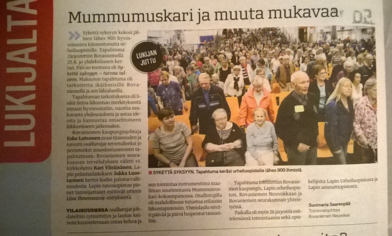 Musiikin merkitys ihmisen hyvinvoinnille on kiistaton. Se on ainutlaatuinen mielen ja ruumiin hoitokeino, se on rikas ja monipuolinen virike, joka aktivoi aivoja. Oli mahtavaa saada olla mukana Sykettä Syksyyn -tapahtumassa, jossa sain vetää maailman suurimman mummomuskarin! Kiitos, mummot! Teissä on energiaa!
